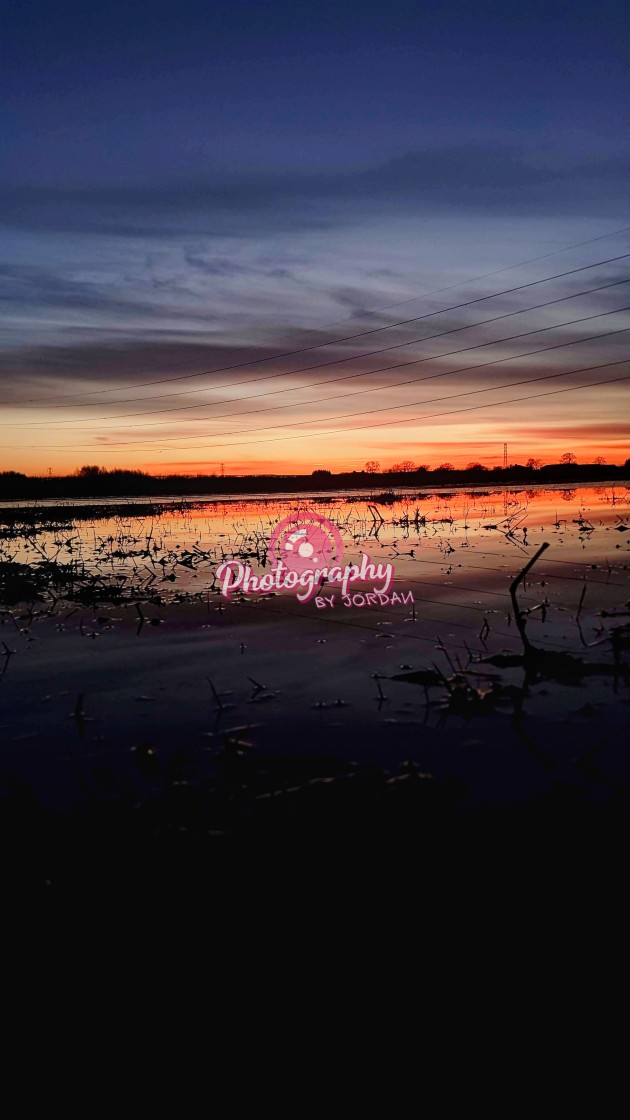 This is a picture of a reflection of the sunset in the water in Hale, England.